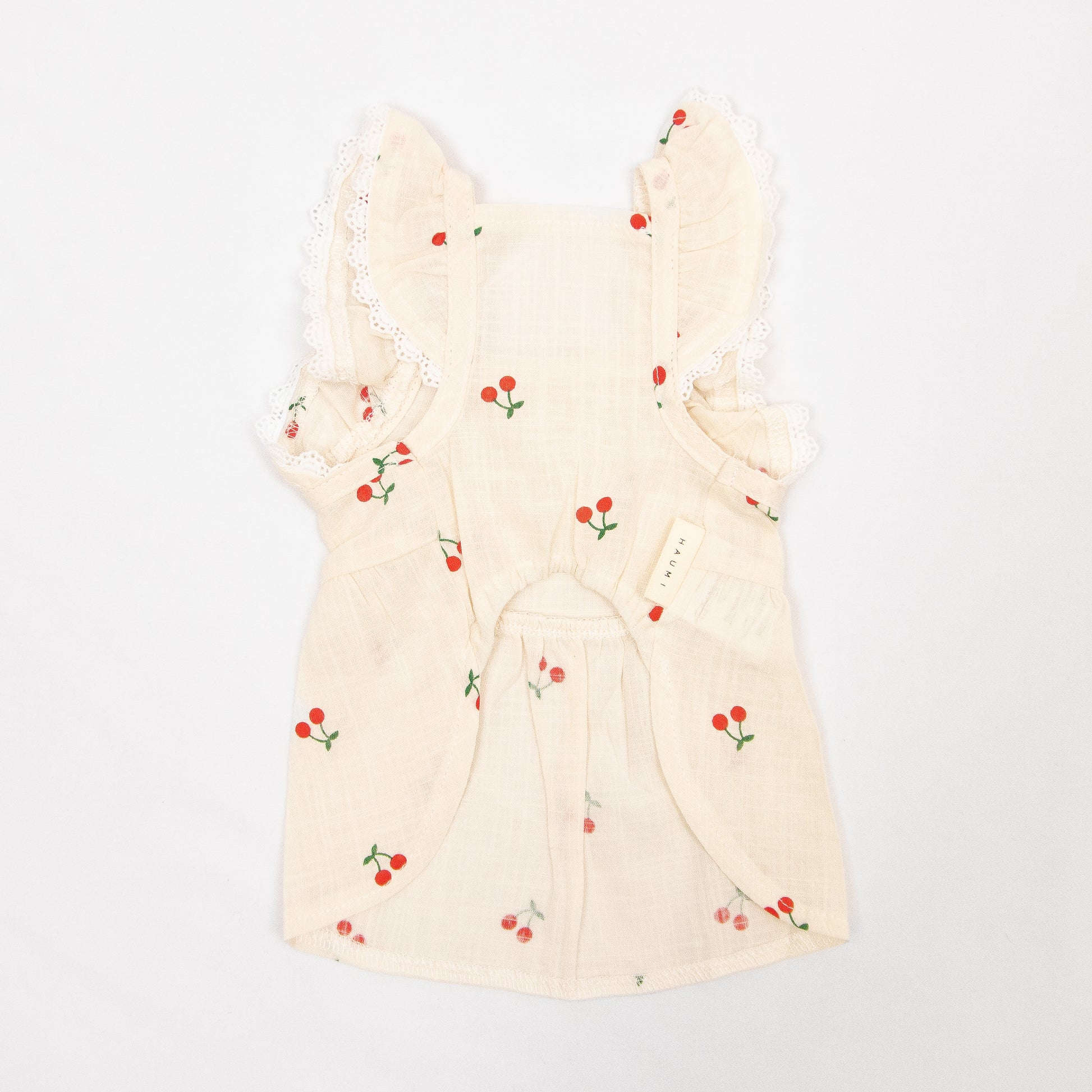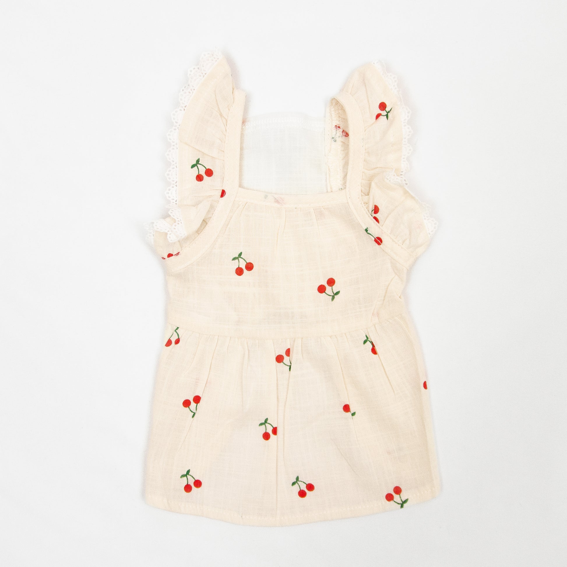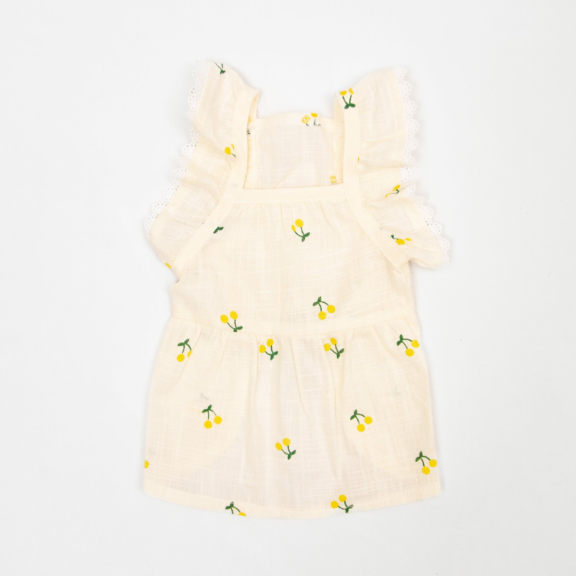 かわいいさくらんぼ柄のワンピース。 袖のフリルがよりかわいさを引き立てます。おでかけにぴったりのお洋服です。