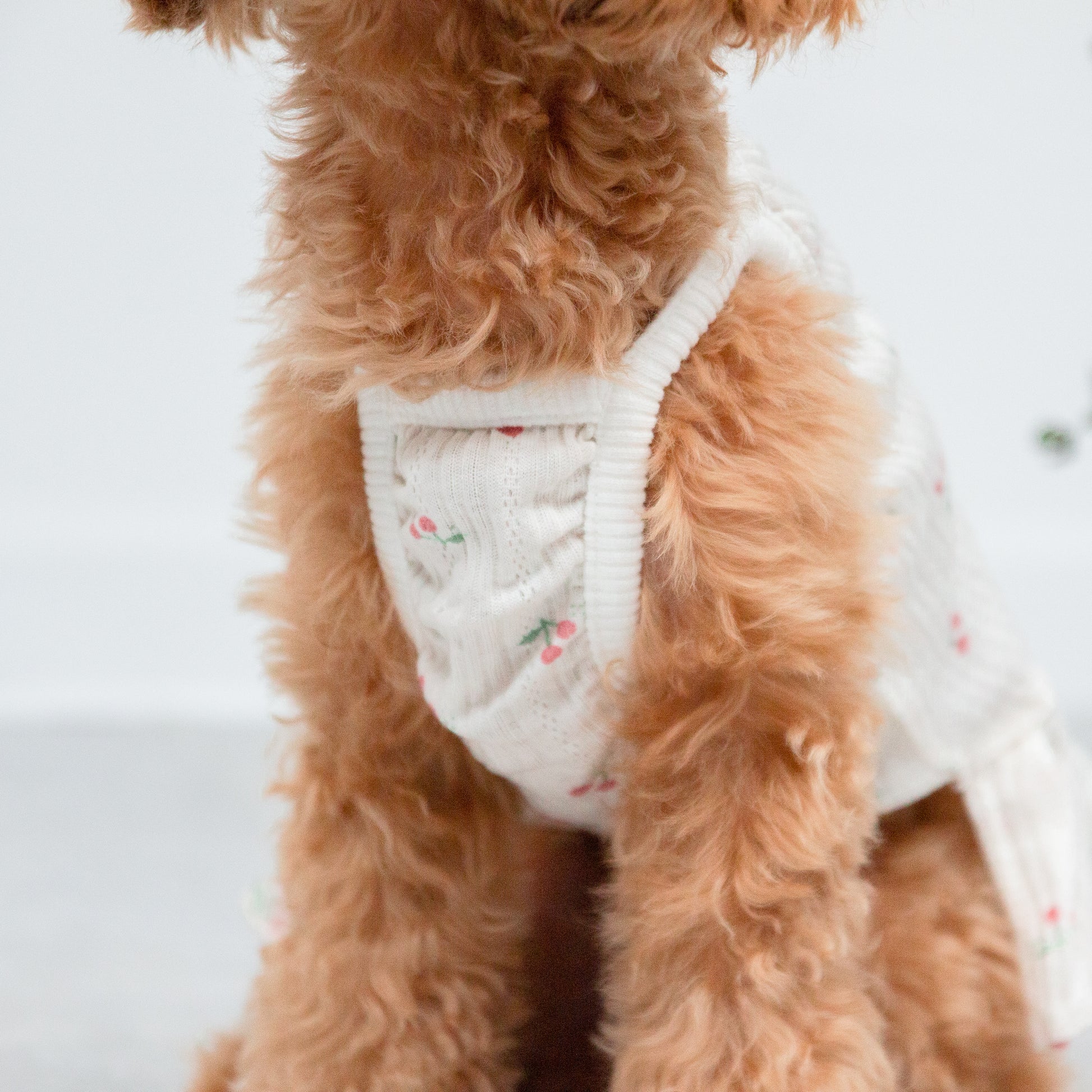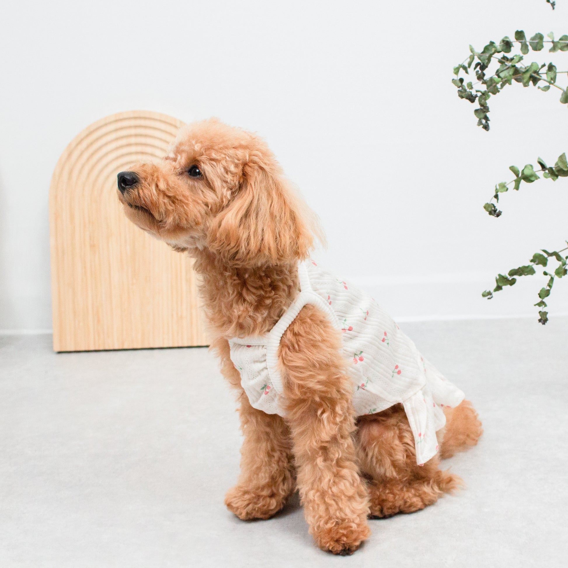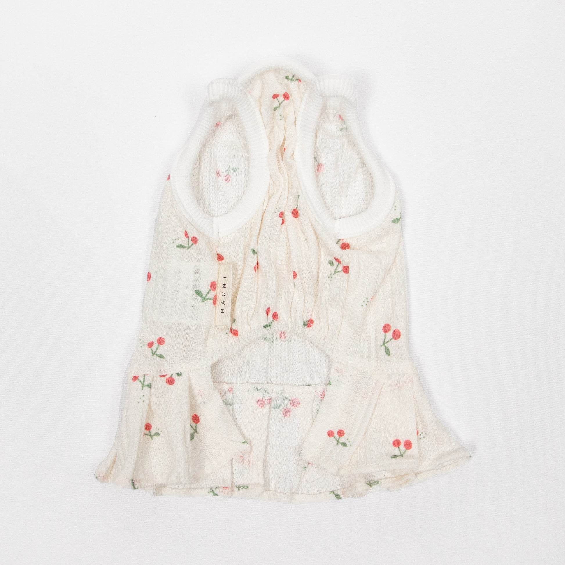 さっと着せられるさくらんぼ柄のキャミソールワンピです。 暑い夏でもお散歩中はわんちゃんの肌を守るために1枚着ておくと安心です。