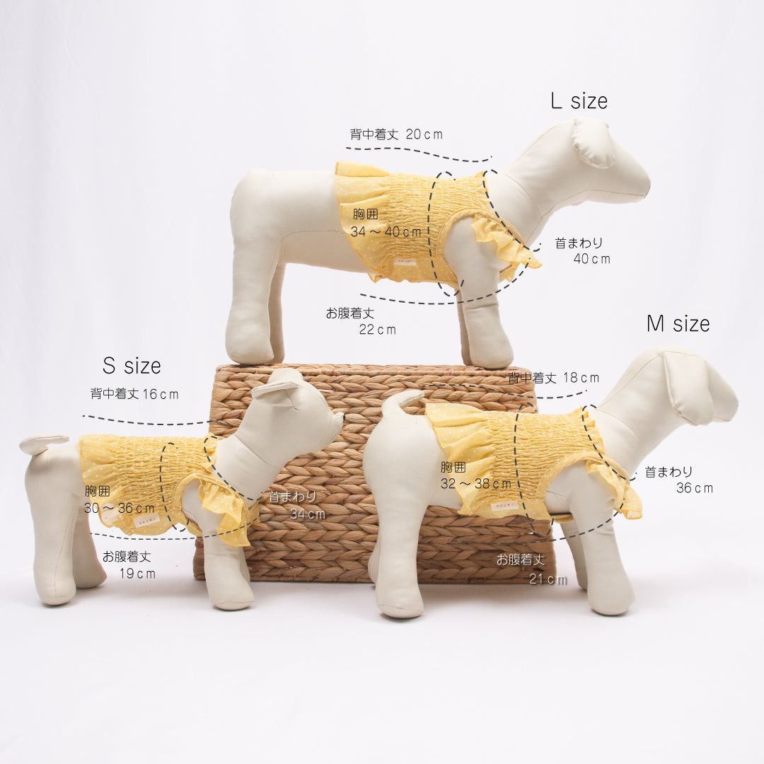 わんちゃんにピッタリなサイズのお洋服をお求めいただくために、下記のサイズガイドと注意事項をご一読いただき、わんちゃんに合うサイズのお洋服をお選びください。犬種や体重などの個体差や、洋服のデザイン・形状によってサイズが異なる場合がございますので、厳密に正しいサイズをご提示するのは難しいことをご理解いただけますようお願いいたします。また、購入の際は実際の商品サイズをご確認のうえお手続きを行っていただきますようお願いいたします。