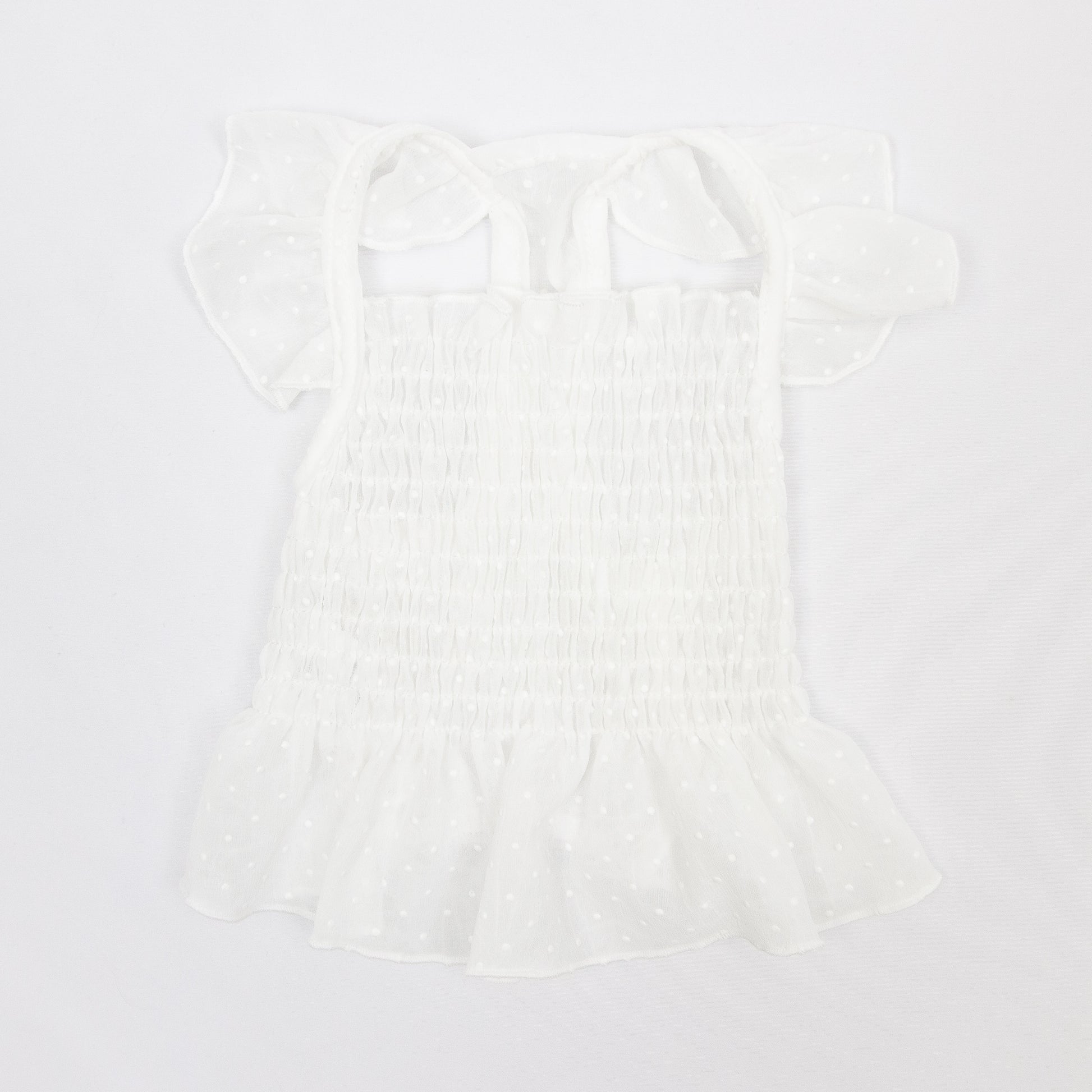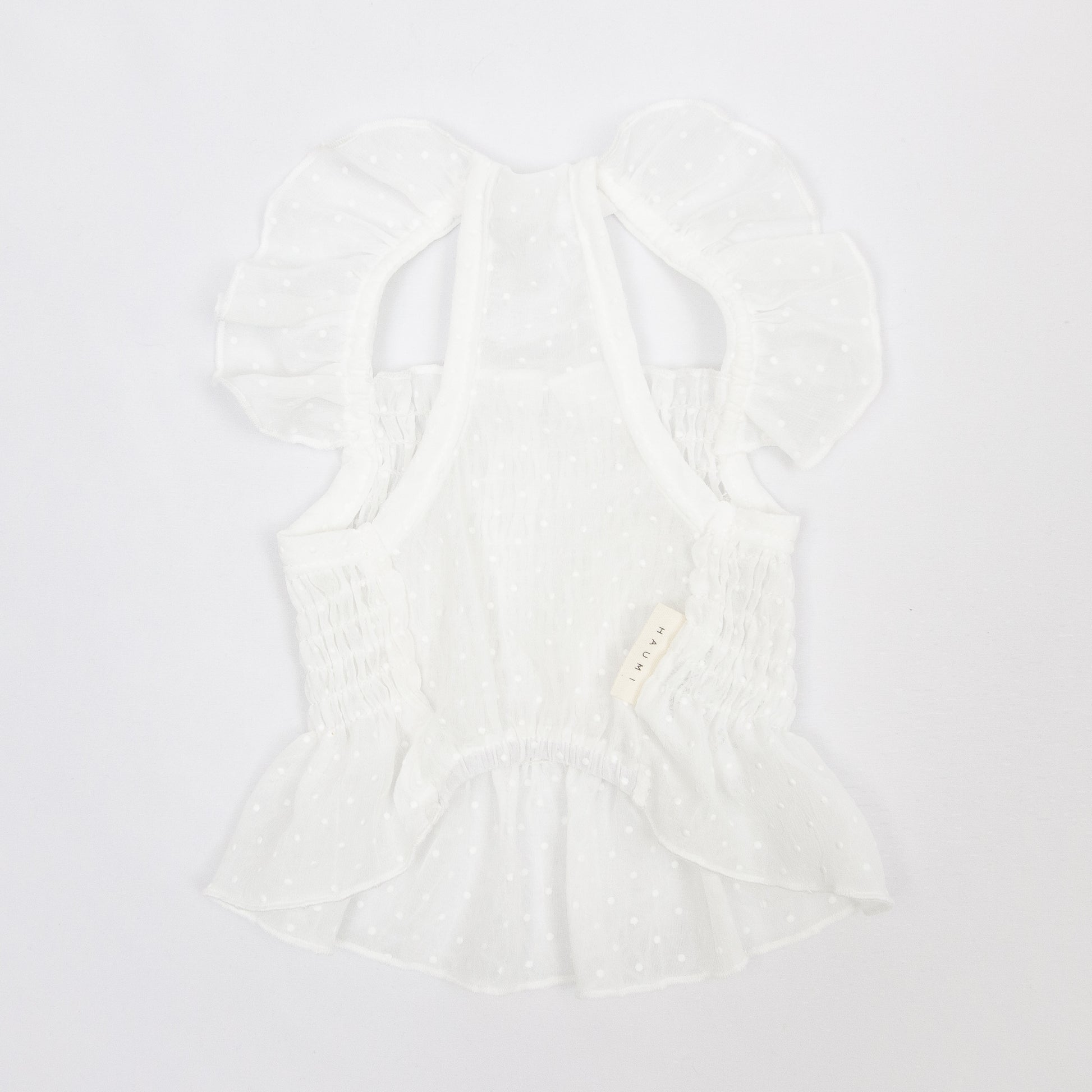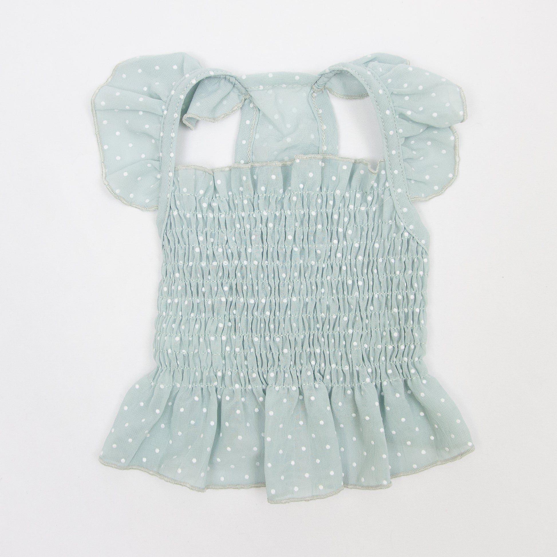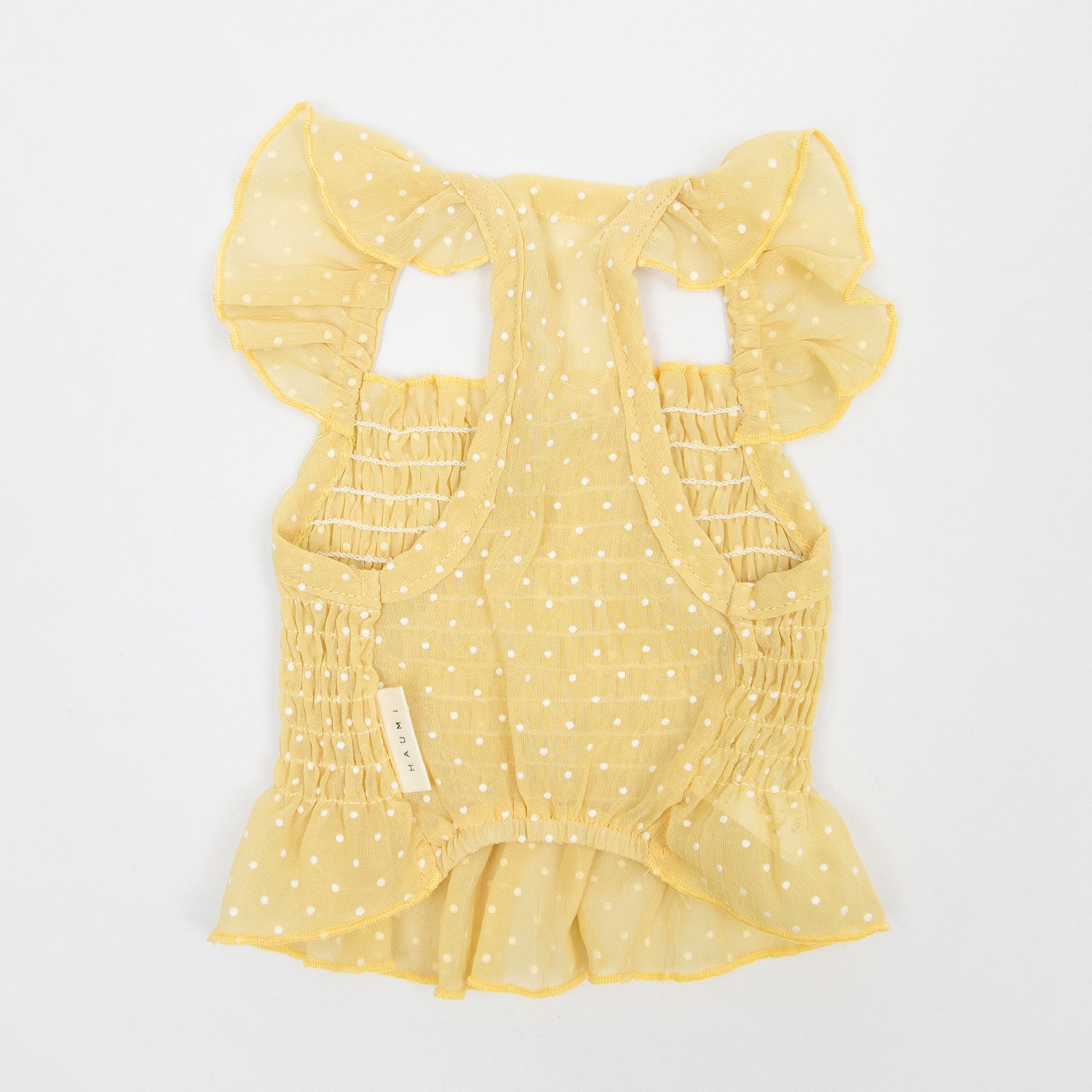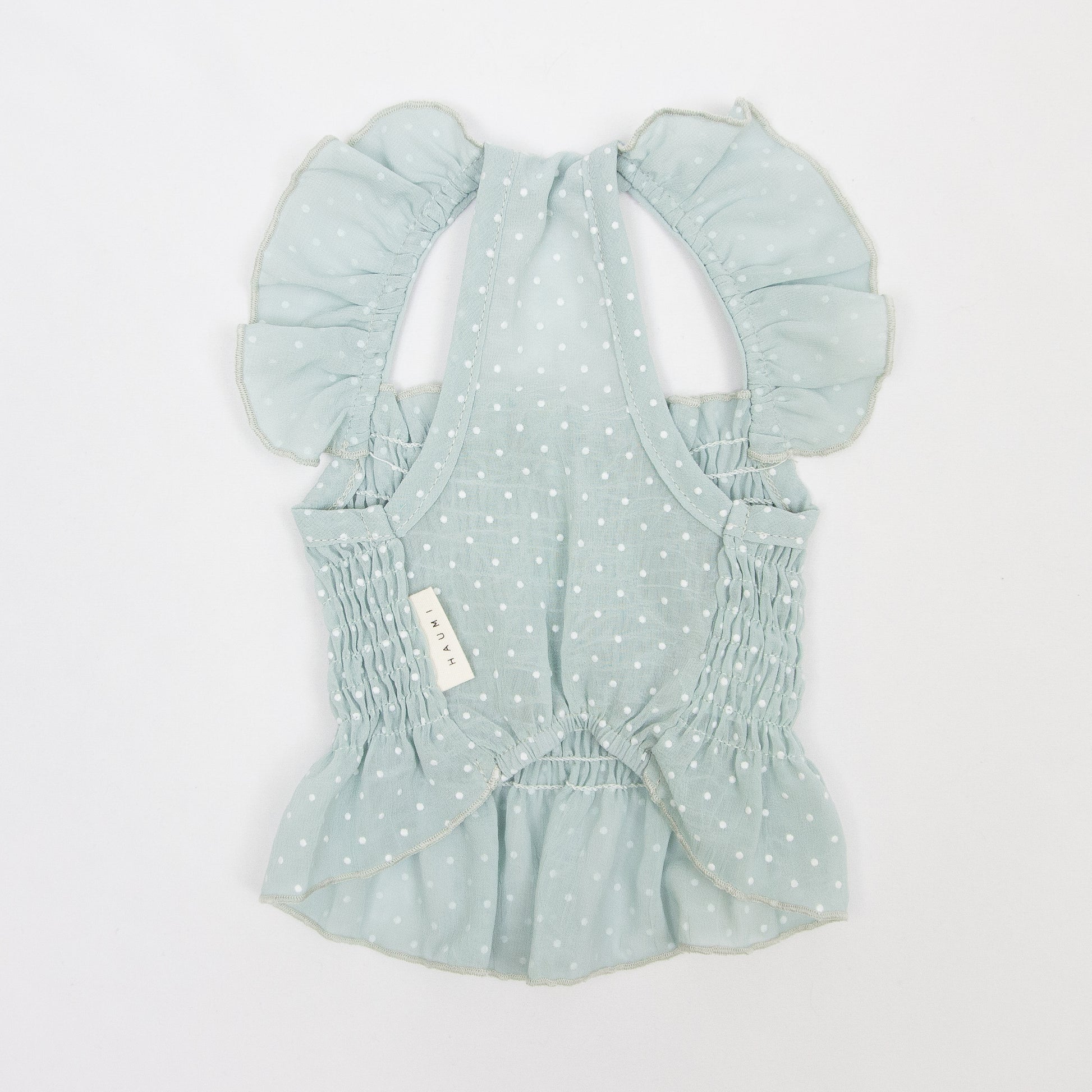見た目にも涼し気なドット柄のワンピースです。 主張し過ぎないドット柄がアクセントになっており、フリフリの袖もかわいらしさを演出してくれます。