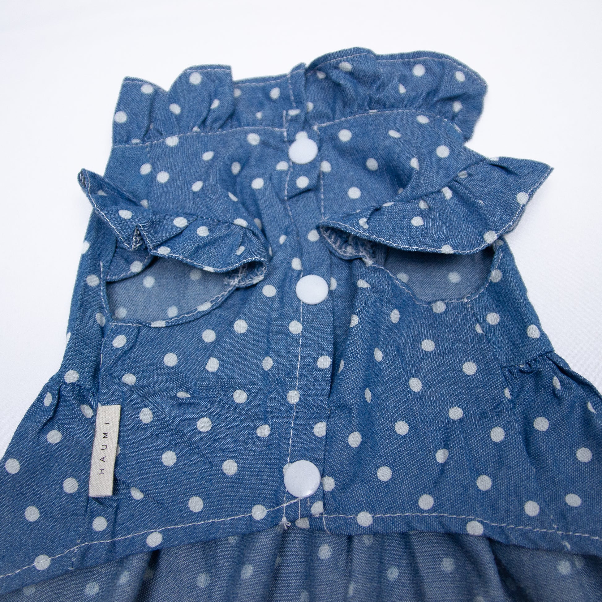 デニム風生地がかわいい秋にぴったりのワンピースです。 生地が薄くさっと着られるのでちょっとしたお出かけにも最適です。 背中のフリルがかわいらしさを引き立ててくれる1枚ですよ。